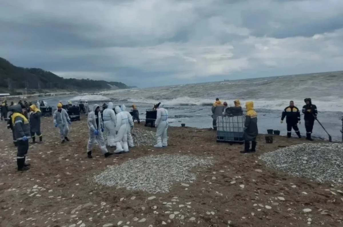 В краснодарском Туапсе продолжают устранять последствия разлива нефтепродуктов в реку после украинской атаки на морской терминал.